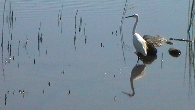 Common Sandpiper and Little Egret at Porth Hellick