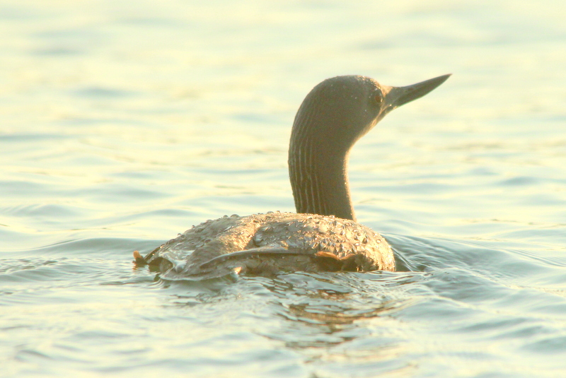 This morning I got a text from Andrew Gardener saying that he had the summer plumage Red-throated Diver in Porthcressa Bay. This is the bird that was seen flying towards St Martins in The Roads on the 30th September by Paul Semmens. The two visits that I made to see the bird found it over 100 miles away towards Peninnis! I was told that it showed well at high tide earlier on and decided to return just after 18.00 two hours before high tide. I was rewarded briefly with it performing at only a few meters away from the shore as I tried to hide among the boulders . However, I was always looking directly into the sun.