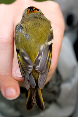 In the last 3 days Jim has trapped 3 Firecrest at Porth Hellick. Nearby later on I saw 2 Firecrest unringed.